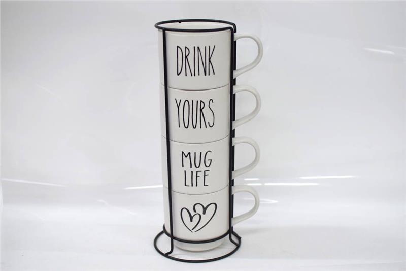 Набір чашок на підставці Ardesto, 4шт., 320мл, кераміка, метал, білий