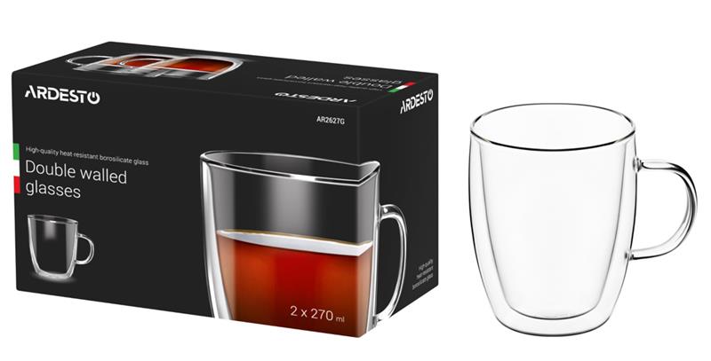 Набір чашок з ручками з подвійними стінками Ardesto, 270мл, 10см, 2шт (AR2627G)