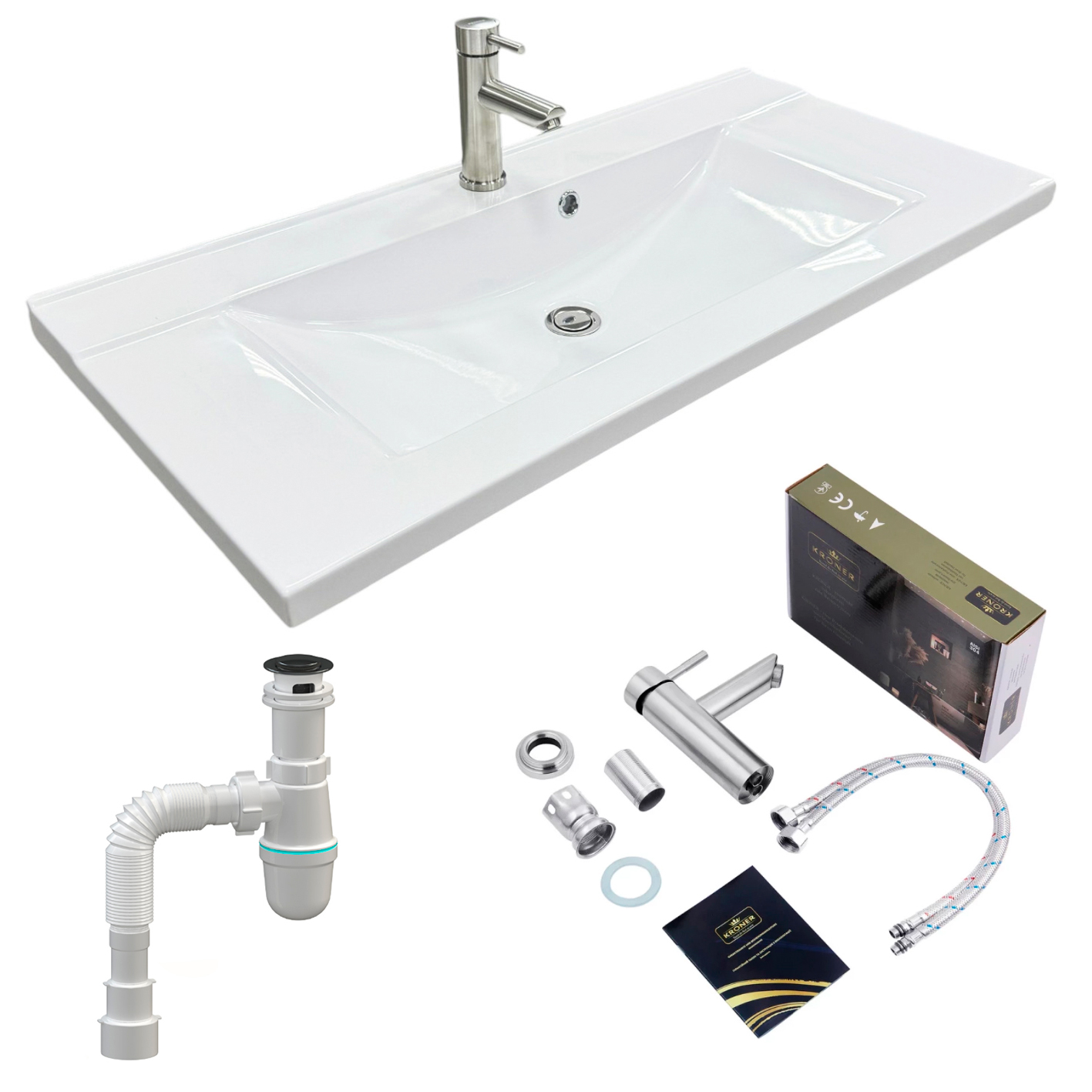 Набір для ванної кімнати, раковина, умивальник Adamant QUANTO 100, штучний камінь, прямокут., з сифоном Click-Clack + змішувач