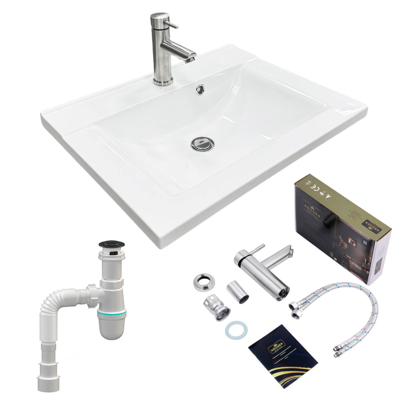 Набір для ванної кімнати, раковина, умивальник Adamant QUANTO 60, штучний камінь, прямокут., з сифоном Click-Clack + змішувач