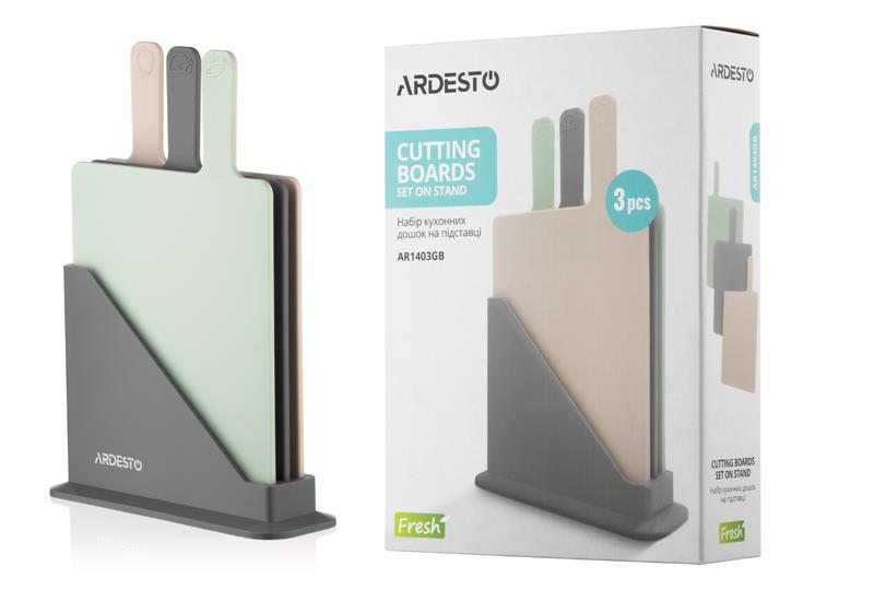 Набір дошок кухонних на підставці Ardesto Fresh, 3шт, 24.1х33х7.9см, пластик (AR1403GB)