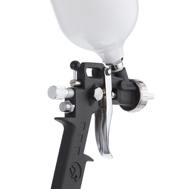 Оснащений верхнім бачком, об'ємом 600 мл, діаметр форсунки – 1,5 мм. Дозволяє наносити рівний та акуратний шар різних ЛФМ середньої в'язкості. У конструкції передбачено три налаштування: