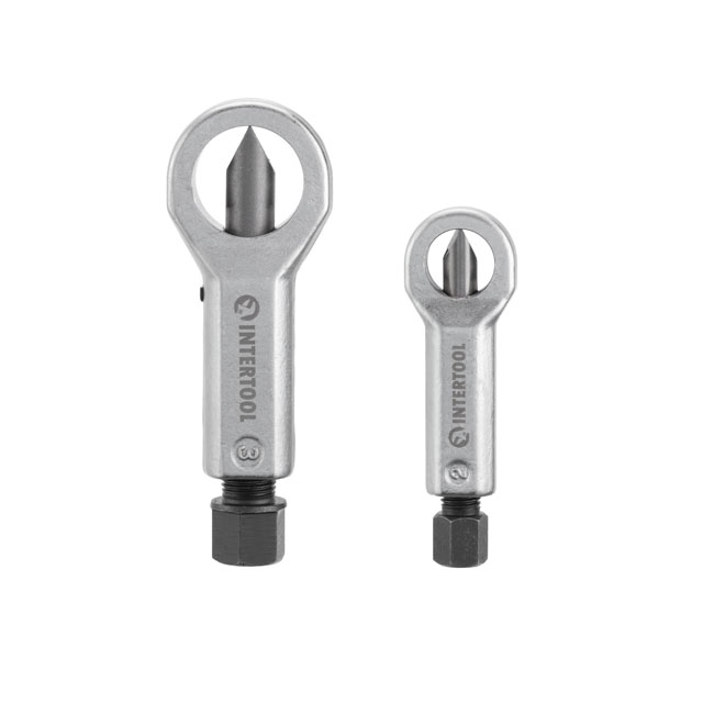 Гайкорізи виготовлені з міцної інструментальної сталі, тому ви можете бути впевнені у їхній надійності. До комплекту входять два інструменти для роботи з гайками різного діаметра: від 13 до 16 мм та від 16 до 22 мм.