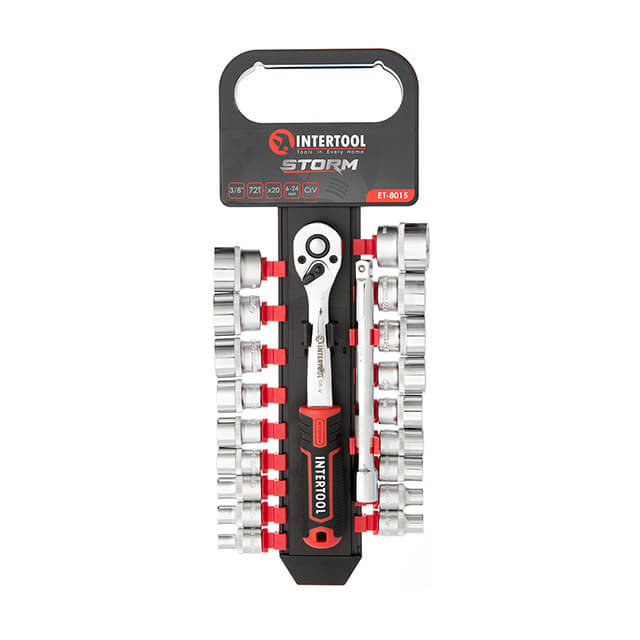 Набір головок STORM, 3/8", Cr-V, 20 од., головки: 6-24 мм, тріскачка 72 зуби, подовжувач 150 мм
