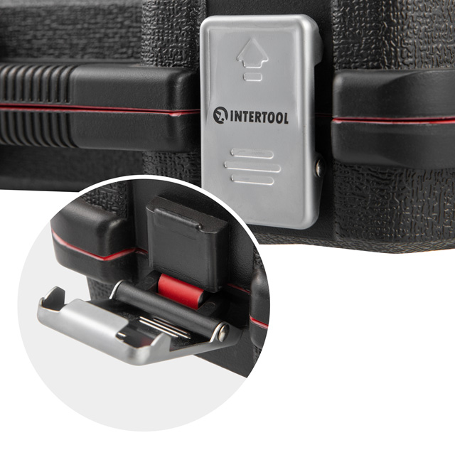 Набір укомплектований у кейс з персональними комірками під кожен інструмент для зручного зберігання та транспортування.