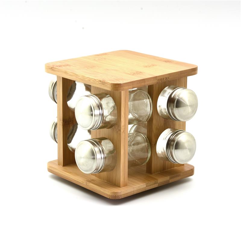 Набір ємностей для спецій на підставці Ardesto Midori, 9 предметів, 80мл, 19x19x15.5см, бамбук, нержавіюча сталь, скло, пластик