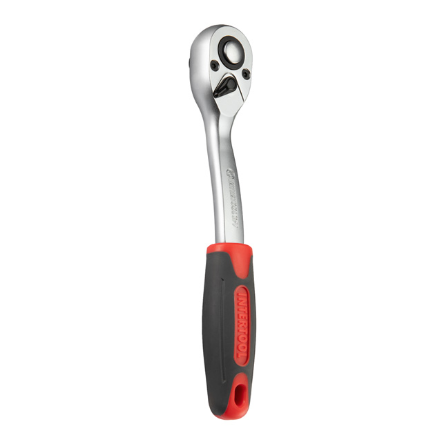 У наборі тріскачка з посадковим квадратом 1/2", має реверс, а також кнопку для скидання і фіксації головок. Корпус тріскачки став більшим і міцнішим, виробляється з Cr-V сталі, а губки храповика з Cr-Mo сталі. Ручка надійно сидить у руці і не вислизає. Сплощений профіль та вигнута форма тріскачки дозволяє дістати кріплення у важкодоступних місцях.