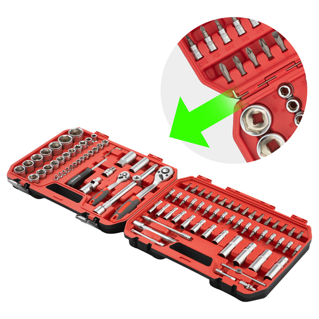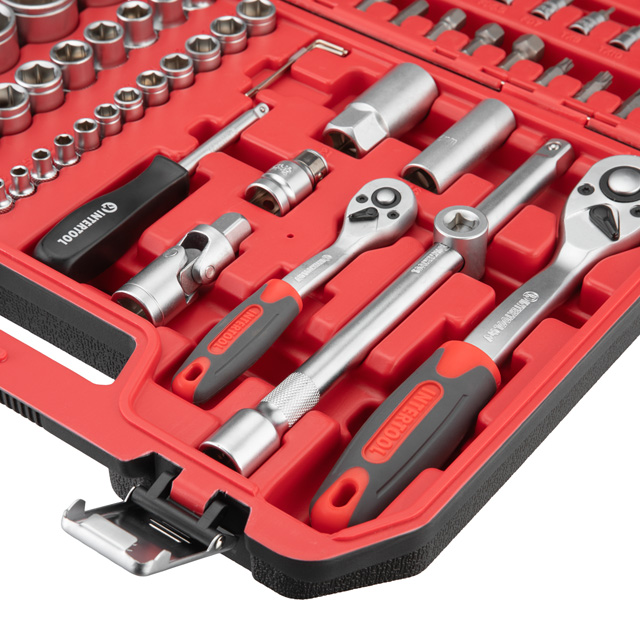 Найголовніша відмінність набору від професійної та STORM серії – це його доступна ціна, матеріал виготовлення інструменту та кейсу. При цьому функціонал залишається тим самим! Інструменти виготовлені з вуглецевої загартованої сталі, їх тверді грані не стираються при роботі. Головки відповідають стандарту DIN 3124, що гарантує ідеальне прилягання до гайок та болтів. Біти та насадки виконані з якісної Cr-V сталі.