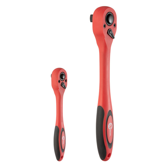 Механізм тріскачок має плавний хід у 72 зубці, вирізняється високою точністю та зносостійкістю. Швидке скидання головок та наявність реверсу спростять і прискорять роботу майстра. Вигнута форма ручки для зручної роботи у важкодоступних місцях. Головки надійно фіксуються на посадкових квадратах тріскачок, не спадають і щільно прилягають до поверхні кріплення. Тріскачки повністю вкриті захисним шаром поліпропілену з гумовою накладкою в місці хвату для кращої фіксації в руці, не ковзають та не випадають під час роботи.