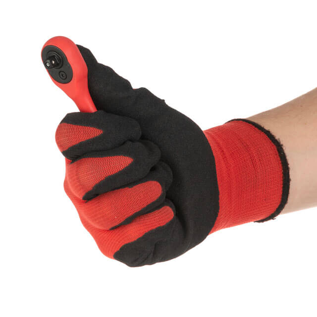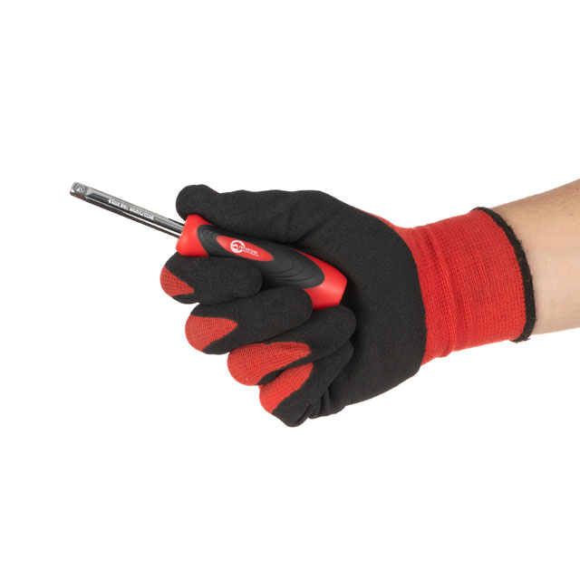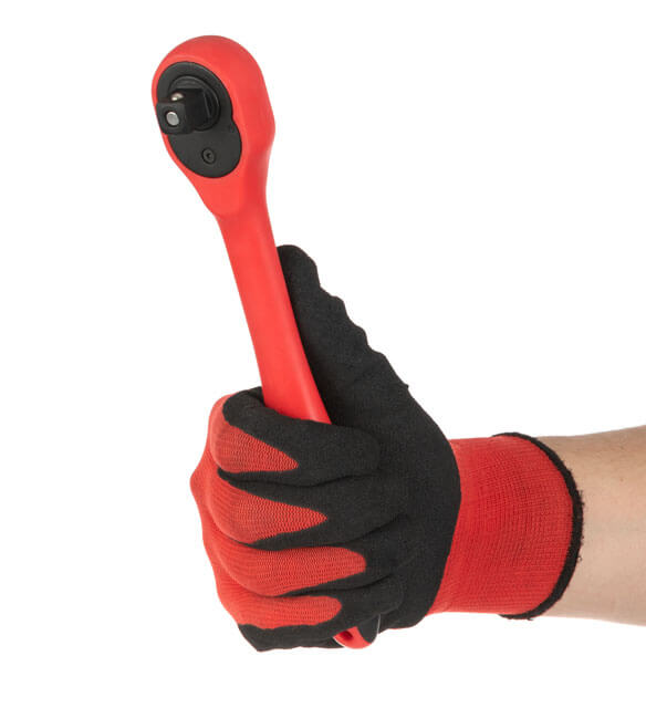 Невеликий вигин руків'я збільшує комфорт під час роботи з незручно розташованими кріпленнями. Тріскачка повністю вкрита захисним шаром поліпропілену з гумовими вставками на ручці для міцної фіксації інструмента в руці.