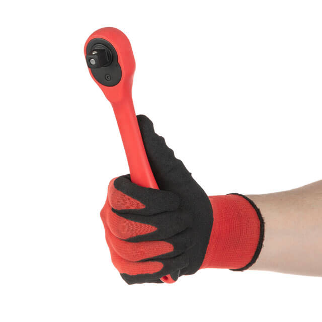 Невеликий вигин руків'я збільшує комфорт під час роботи з незручно розташованими кріпленнями. Тріскачки повністю вкриті захисним шаром поліпропілену з гумовими вставками на руків'ї для міцної фіксації інструмента в руці.