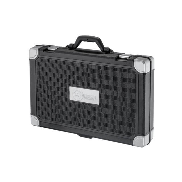 Кейс виготовляється з міцного пластику з металевими замками та посиленими кутами. Всі інструменти щільно зафіксовані на своїх посадкових місцях з маркуванням розміру головок. Наявність поролонового прошарку не дозволяє висипатися вмісту набору під час транспортування.