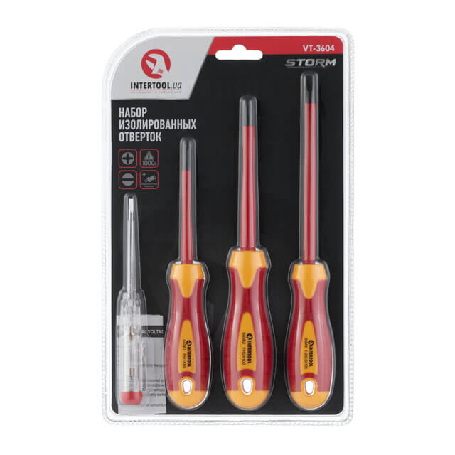 Набір ізольованих викруток з індикатором напруги, 4 од., VDE, Cr-V, 80-125 мм (SL1×5,5 мм, PH1, PH2, викрутка індикатор) STORM