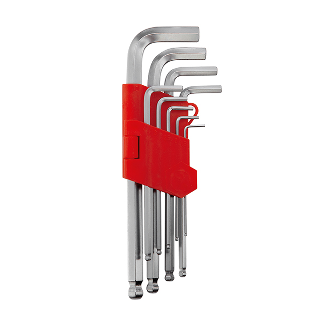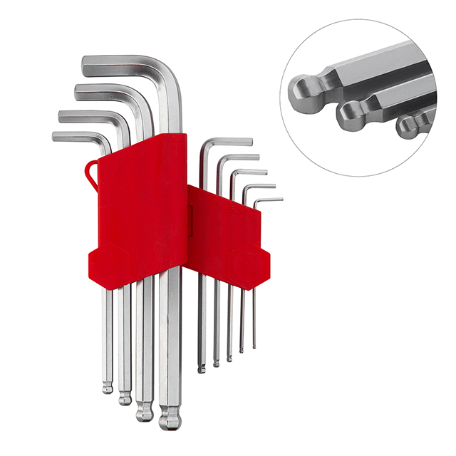 Набір ключів Г-подібних шестигранних подовжених, з кулястим наконечником, 9 шт., 1,5-10 мм, Cr-V