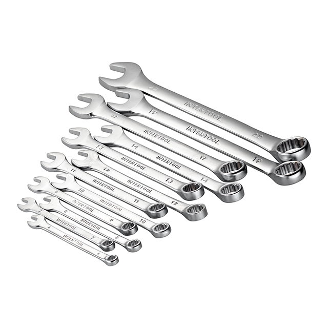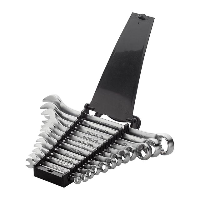 До набору INTERTOOL HT-1203 увійшли ріжково-накидні ключі, розмірами: 6, 7, 8, 9, 10, 11, 12, 13, 14, 17, 19, 22 мм. Це дозволяє обрати необхідний розмір під будь-які завдання для монтажу та демонтажу різьбових з'єднань гайок та болтів.