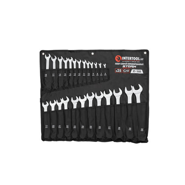 До набору INTERTOOL XT-1005 увійшли ріжково-накидні ключі, розмірами: 6, 7, 8, 9, 10, 11, 12, 13, 14, 15, 16, 17, 18, 19, 20, 21, 22, 23, 24, 25, 26, 27, 28, 30, 32 мм. Це дозволяє обрати необхідний ключ під будь-які завдання для монтажу та демонтажу різьбових з'єднань, гайок та болтів.