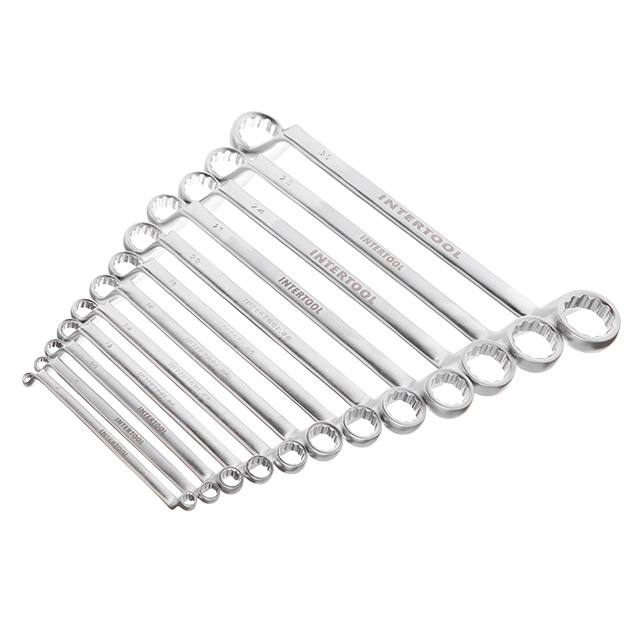 Накидний тип ключів з дванадцятьма гранями збільшує площу прилягання поверхонь та знижує ризик зриву граней гайок та болтів. Практична форма та вигин руків’я ключа забезпечують оптимальні умови для докладання зусилля, завдяки чому ви легко закрутите чи відкрутите кріпильний елемент.