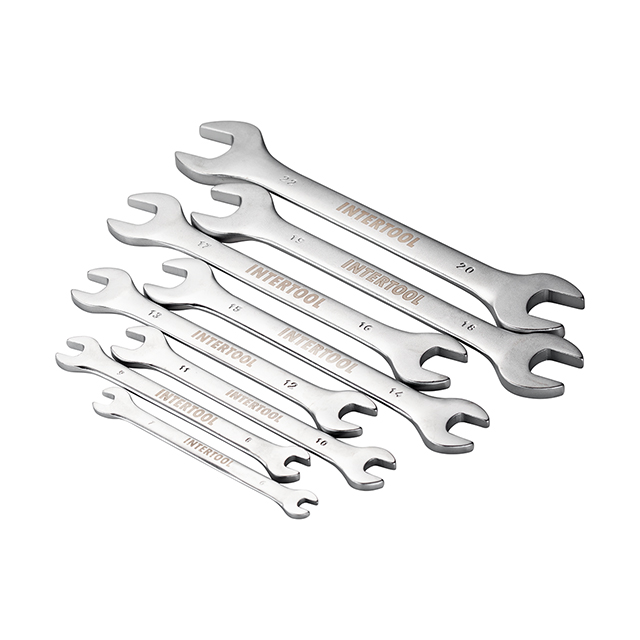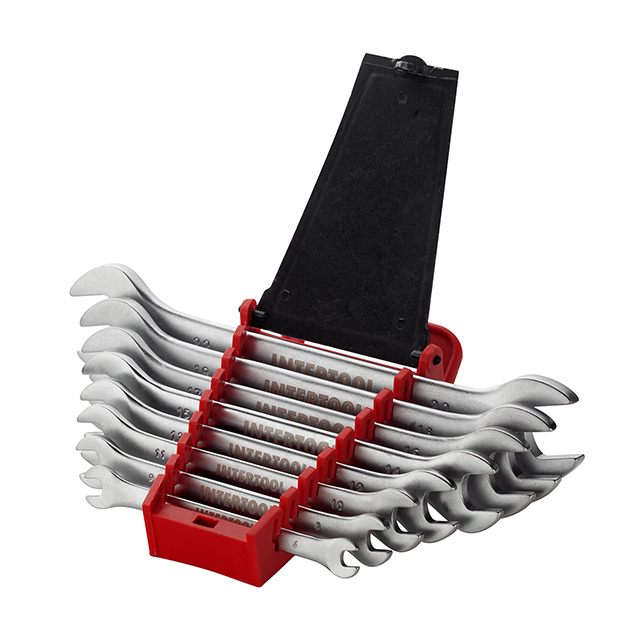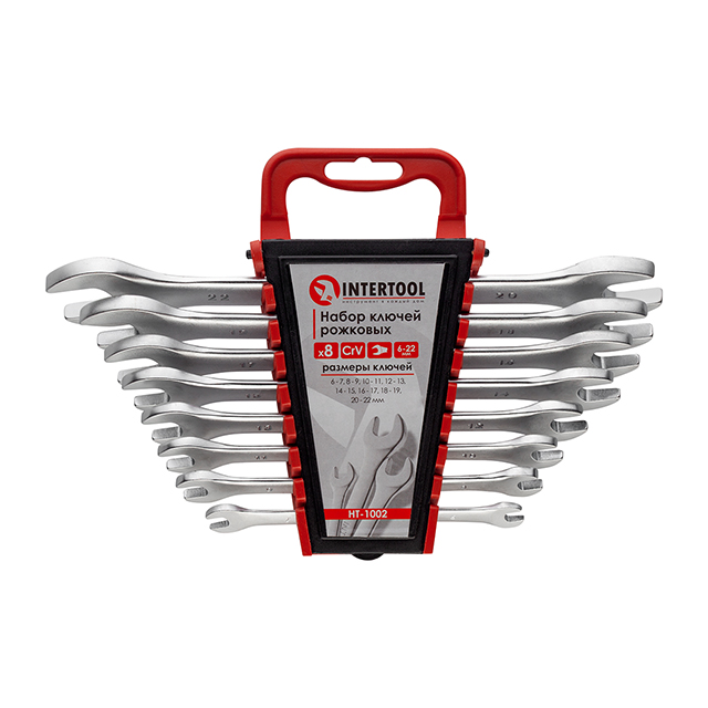 До набору INTERTOOL HT-1002 увійшли ріжкові ключі, розмірами: 6х7; 8х9; 10х11; 12х13; 14х15; 16х17; 18х19; 20х22 мм. Це дозволяє обрати необхідний розмір під будь-які завдання для монтажу та демонтажу різьбових з'єднань гайок та болтів.