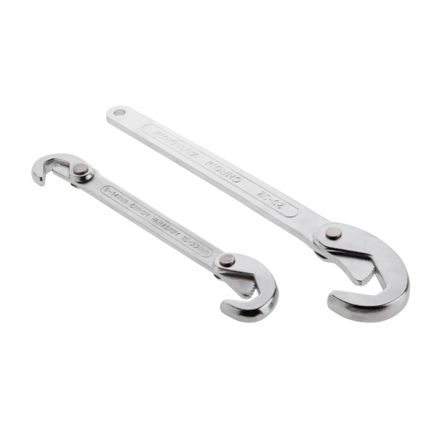 Завдяки конструкції, яка самостійно налаштовується під діаметр труби та фіксуються, ключами зручно затягувати та відкручувати кріплення навіть однією рукою. Ребриста поверхня губок виключає прослизання та забезпечується надійне захоплення гайки.