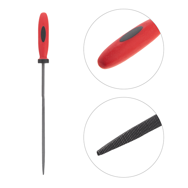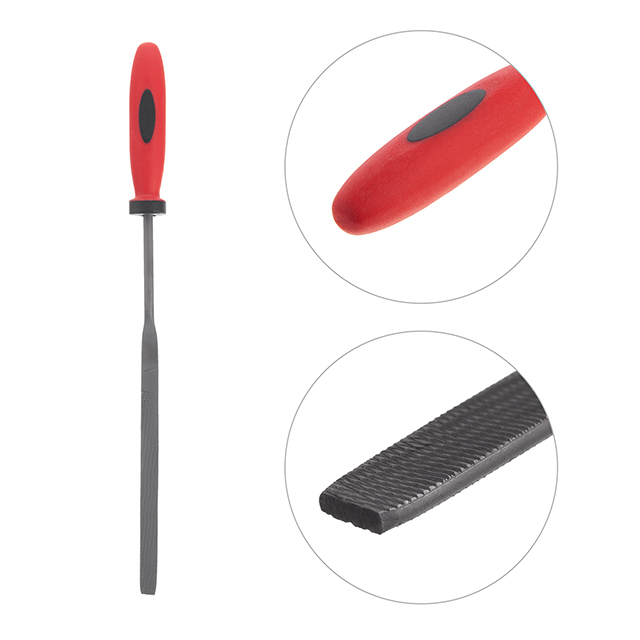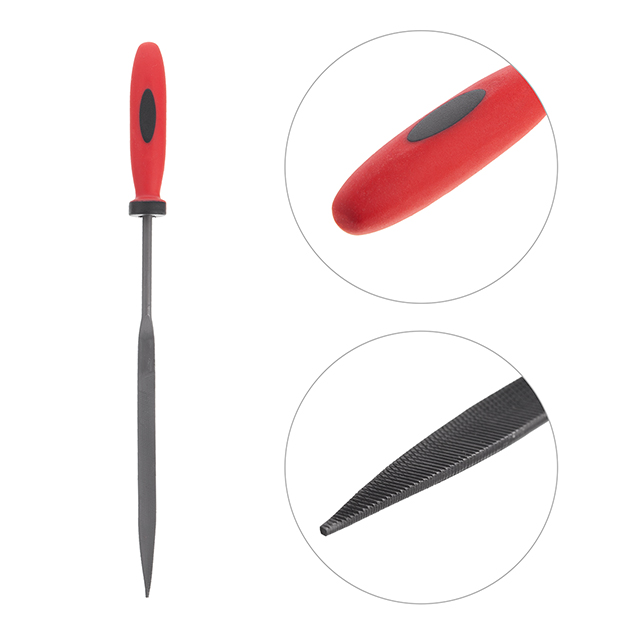 Надфілі мають ергономічні пластикові прогумовані ручки, які забезпечують зручне захоплення під час використання, зводячи до мінімуму втому рук та забезпечуючи високу точність та контроль. Ручки також не ковзають у долонях під час інтенсивної роботи.