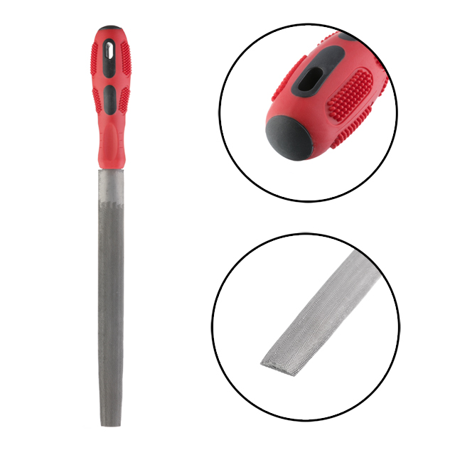 Конусоподібний хвостовик напилків кріпиться до зручної ручки. Двокомпонентне покриття якої забезпечує надійне захоплення інструмента та запобігає ковзанню долоні під час інтенсивних робіт.