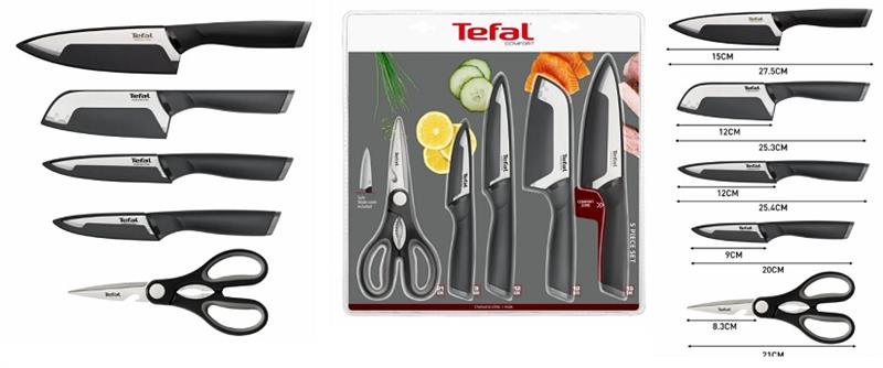 Набір ножів Tefal Comfort, 5предметів, нержавіюча сталь, пластик, чорниц
