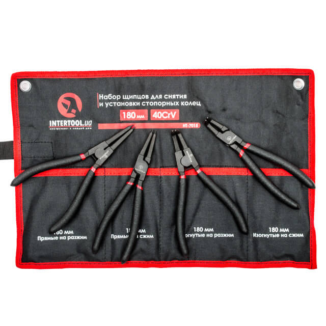 Набір щипців для зняття та встановлення стопорних кілець, 4 шт., 180 мм, 40 Cr-V, фосфатовані.