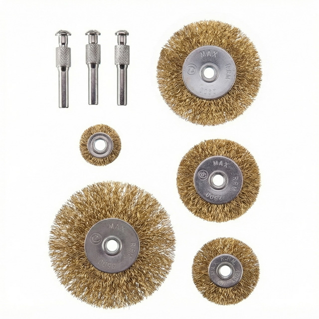 Набір складається з трьох щіток, спеціально розроблених для швидкого очищення та шліфування різних поверхонь: металу, цегли, каменю, дерева тощо. Ідеально підходять для використання з