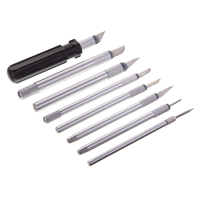 Набір скальпелів для точних робіт стане чудовим помічником у роботі з папером, картоном, деревом, пластмасами, гумою, текстилем, шкірою тощо. Це ідеальний набір лез для хобі та різних прикладних точних робіт.