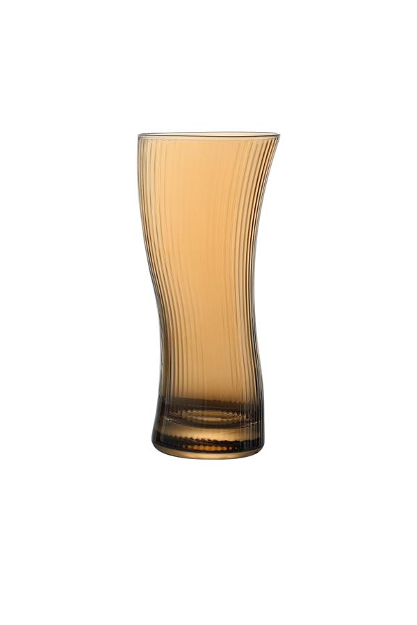 Вишуканий набір ARDESTO Golden Moon складається із двох склянок об’ємом 350 мл. Виготовлені з якісного скла, вироби вирізняються унікальним дизайном – чарівний золотистий колір в поєднанні з оригінальною вигнутою формою. За висоти 17,5 см верхній діаметр становить 7,5 см. Допустиме миття в посудомийній машині.