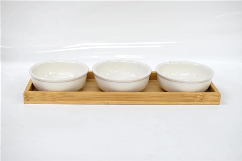 Набір соусників на підставці Ardesto Midori, 3шт., 160мл, порцеляна, бамбук