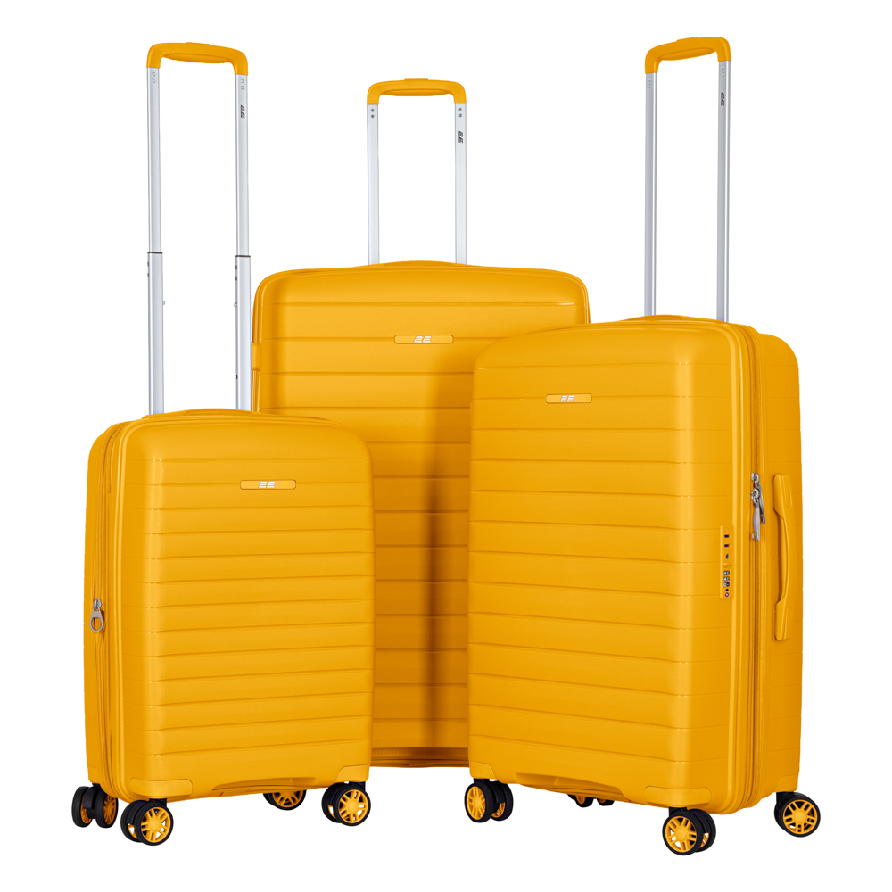 Набір валіз 2E, Aero, поліпропілен, (L+M+S), TSA, 4 колеса, EXP, бурштиново-жовтий