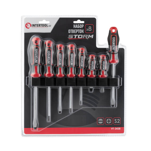 Професійний набір викруток INTERTOOL STORM VT-3438 виготовлений за новітніми технологіями і відповідає вибагливим вимогам майстрів. Викрутки призначені для інтенсивної роботі на СТО, в майстернях, в точках сервісного обслуговування та інших галузях, де постійно є необхідність виконувати роботи з використанням великих навантажень. Такий набір стане відмінним помічником в домашньому арсеналі інструменту і прослужить багато років!