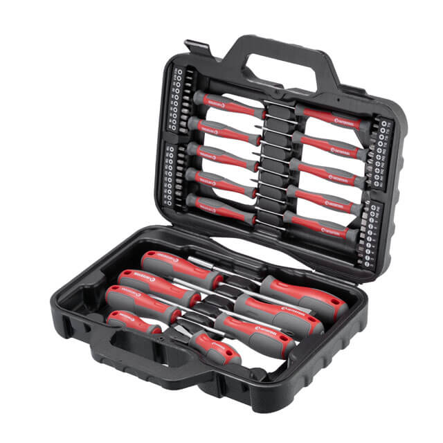 Комплект викруток розміщується у зручному кейсі з ручкою і двома замками для зручного зберігання і транспортування. Кейси виготовлені з ударостійкого пластика з ребрами жорсткості проти механічних пошкоджень.