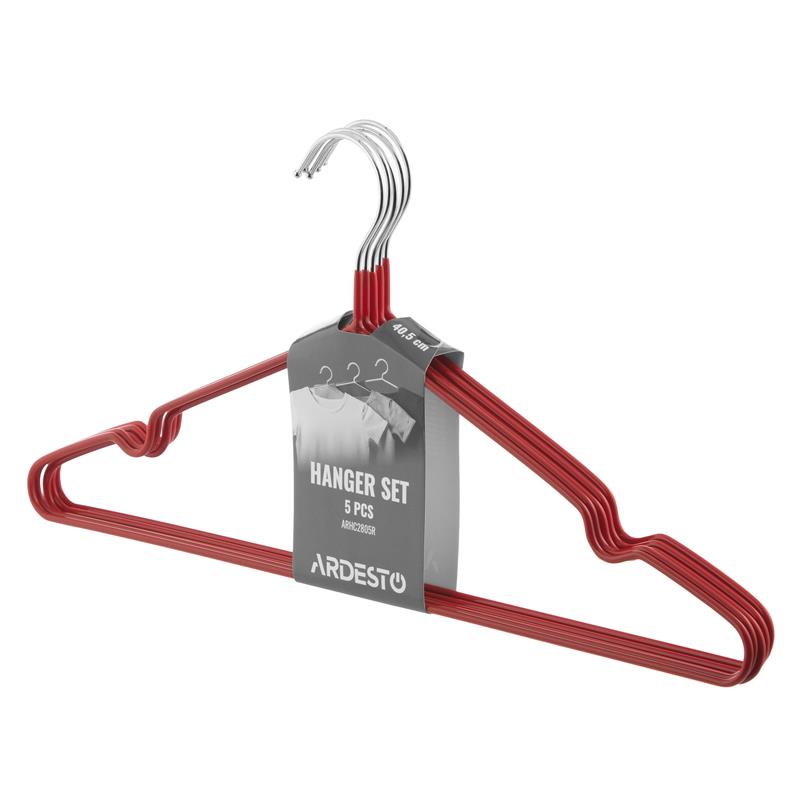 Набір вішаків ARDESTO 40.5см, 5шт, метал, ПВХ, червоний