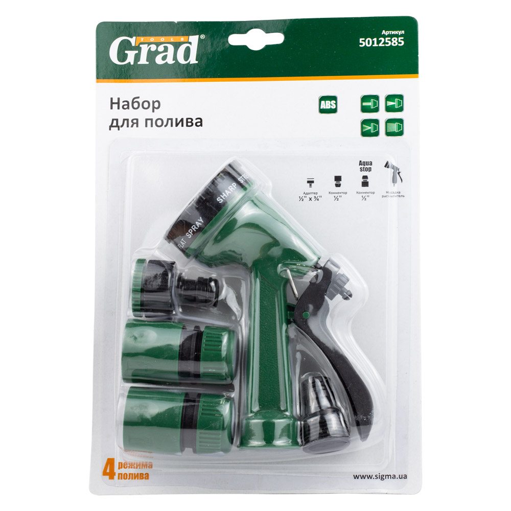 Набір для поливу пістолет-розпилювач 4-х режимний 2 конектори + адаптер на шланг 3/4" GRAD (5012585)