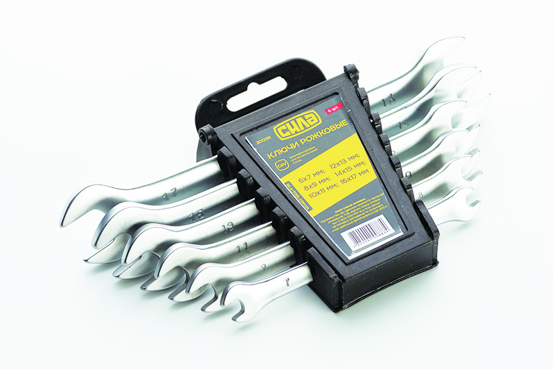 Набір ключів ріжкових CrV 6x7, 8x9, 10x11, 12x13, 14x15, 16x17мм (6шт) СИЛА