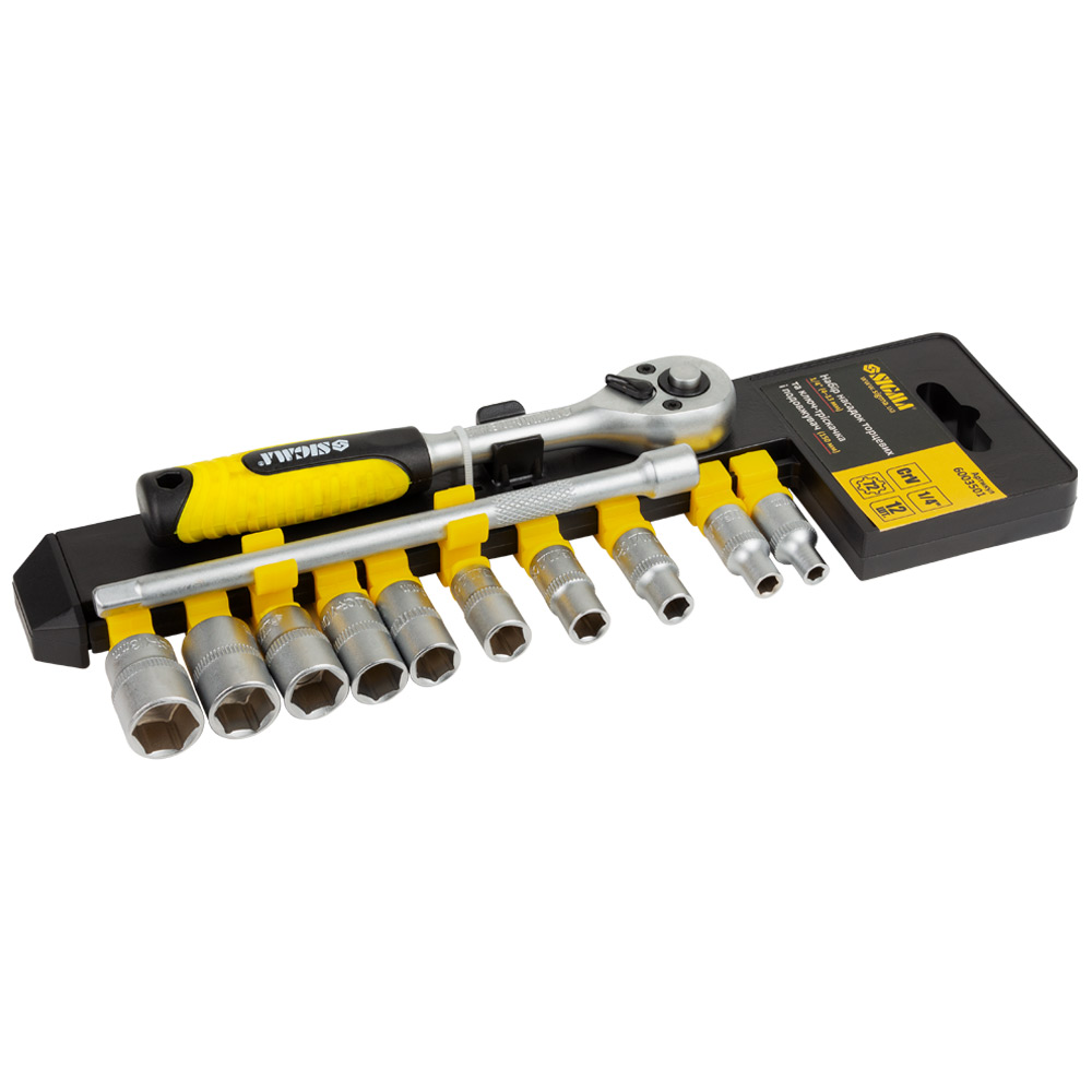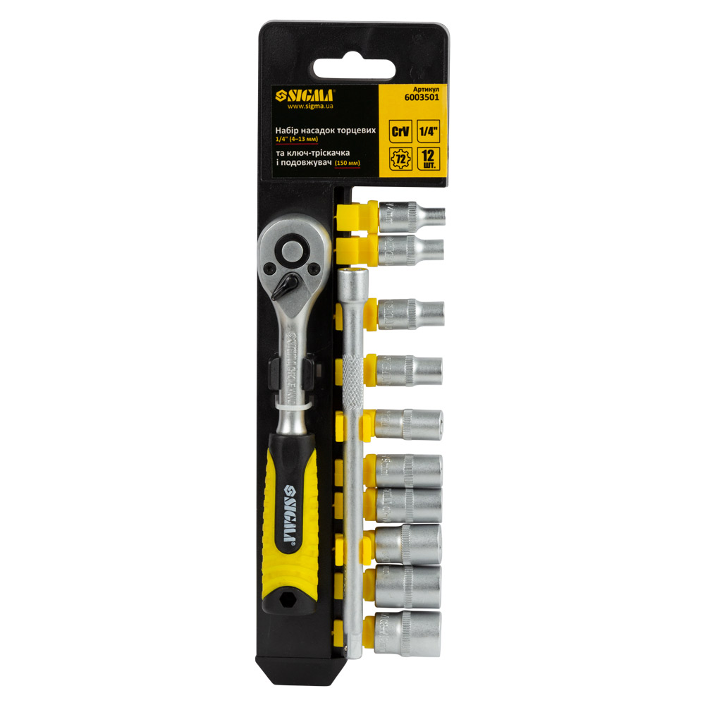 Набір насадок торцевих 1/4" + ключ-тріскачка та подовжувач 12шт CrV SIGMA (6003501)