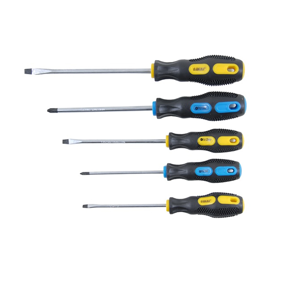 Набір викруток 5шт СrV Sigma (4001101) - призначені для монтажу та демонтажу різьбових з'єднань. Профіль гвинтів або шурупів: Phillips (хрест) або Plane Slot (шліц). Всі викрутки мають стрижень із хромванадієвої сталі з оксидованим магнітним наконечником і ударостійку двокомпонентну (гума+пластмаса) протиковзну рукоятку ергономічної форми з отвором для підвіски.