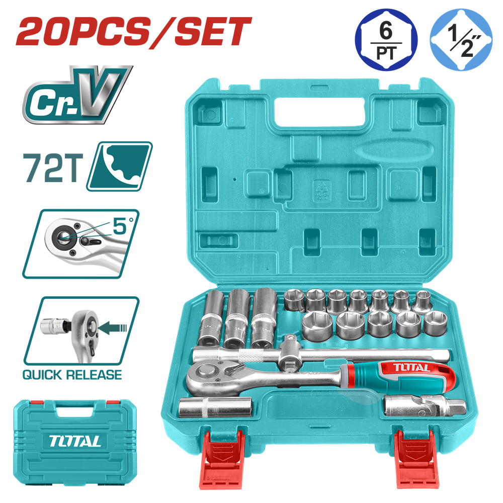 Набір TOTAL THT121201 ключів, головок торцевих 1/2 ", 20 предм., кейс.