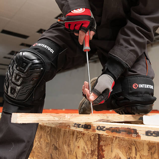 Будівельні наколінники INTERTOOL SP-0054 - це незамінний аксесуар для майстра в процесі будівельних робіт, таких як: укладання плитки, монтаж плінтусів, а також прибирання, роботи в саду та інших задач, під час виконання яких необхідно опиратися на коліна.
