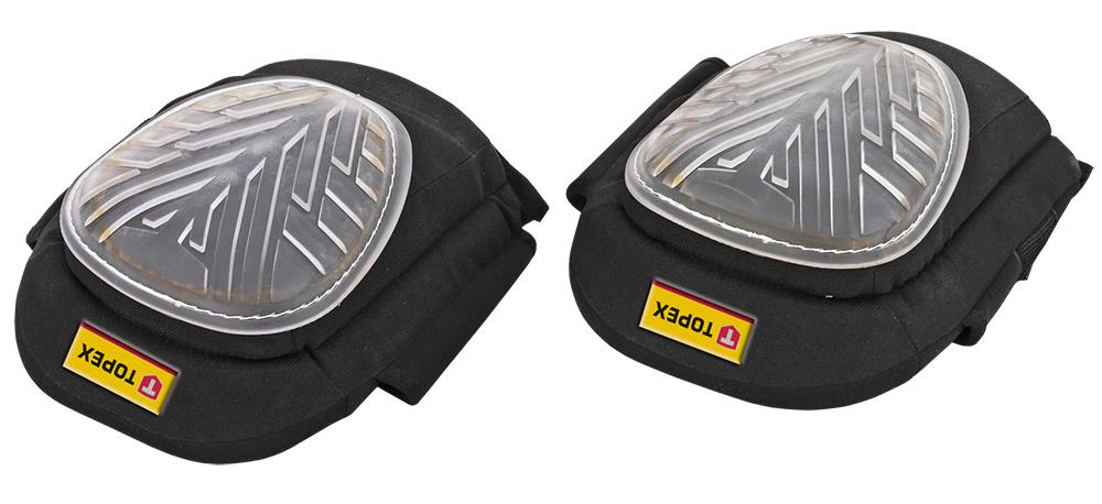 Наколінники TOPEX захищають коліна від ударів. Виготовлені з м'якої гуми. Пластмасова накладка згладжує нерівності, що значно підвищує комфорт роботи. Додатковий захист гарантують гелеві вставки. Еластичне неопренове кріплення, регульоване за допомогою липучок, фіксує наколінники в потрібному місці, зберігаючи комфорт користування. Бренд TOPEX призначений для домашніх майстрів.