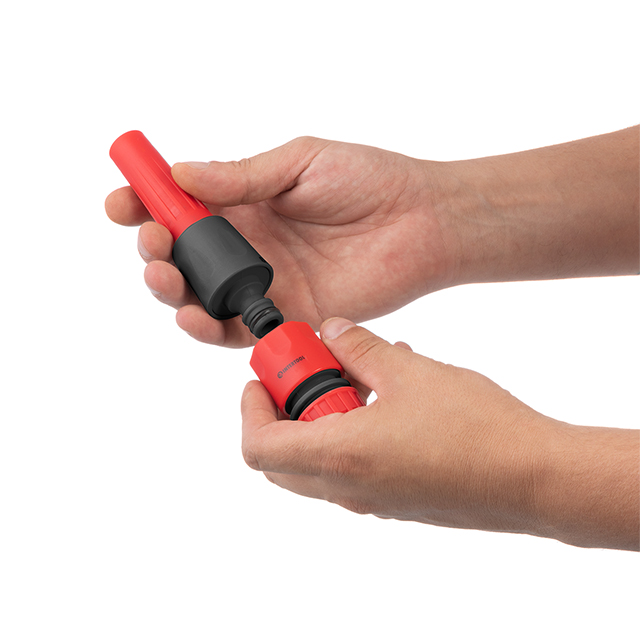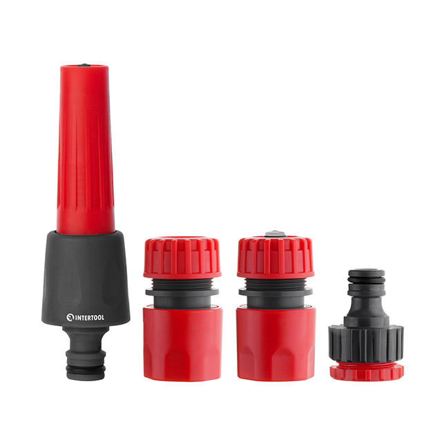 Крім розпилювальної насадки, до комплекту включені конектори для шланга 1/2", один конектор з аквастопом для автоматичної зупинки потоку води при від'єднанні насадки, що дуже зручно. Також до комплекту додано адаптер для з'єднання шланга з конектором до джерела води - крану із зовнішньою різьбою 3/4” або 1/2”.