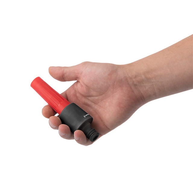 Ця розпилювальна насадка, як і пістолети для поливу, плавно регулює інтенсивність подачі води, а також форму струменя.