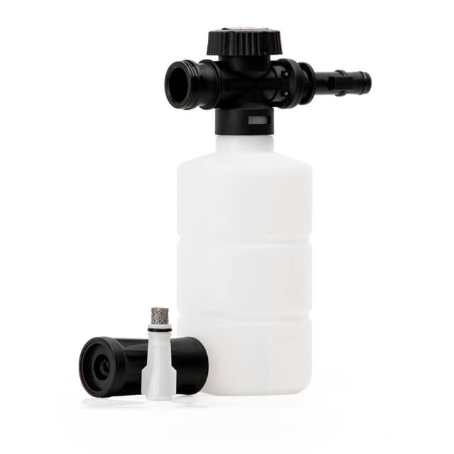Насадка виготовлена з міцного пластику з пінною пігулкою всередині для утворення якіснішої піни. Це не тільки покращує результати очищення, але й економить мийні шампуні завдяки регулюванню подачі мийного засобу.