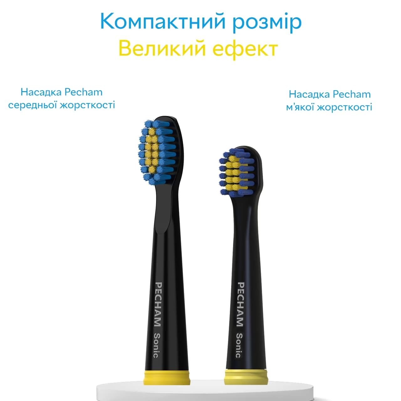 Всі насадки для щітки Pecham Black Travel мають кольорові смужки, що полегшить ідентифікацію, якщо насадками користуються кілька членів сім’ї.