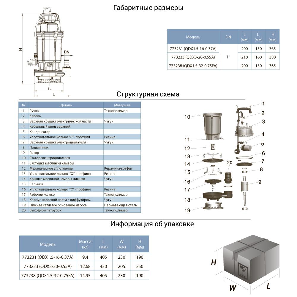 Насос дренажний 0.75кВт Hmax 35м Qmax 80л/хв AQUATICA QDX1.5-32-0.75FA (773238)