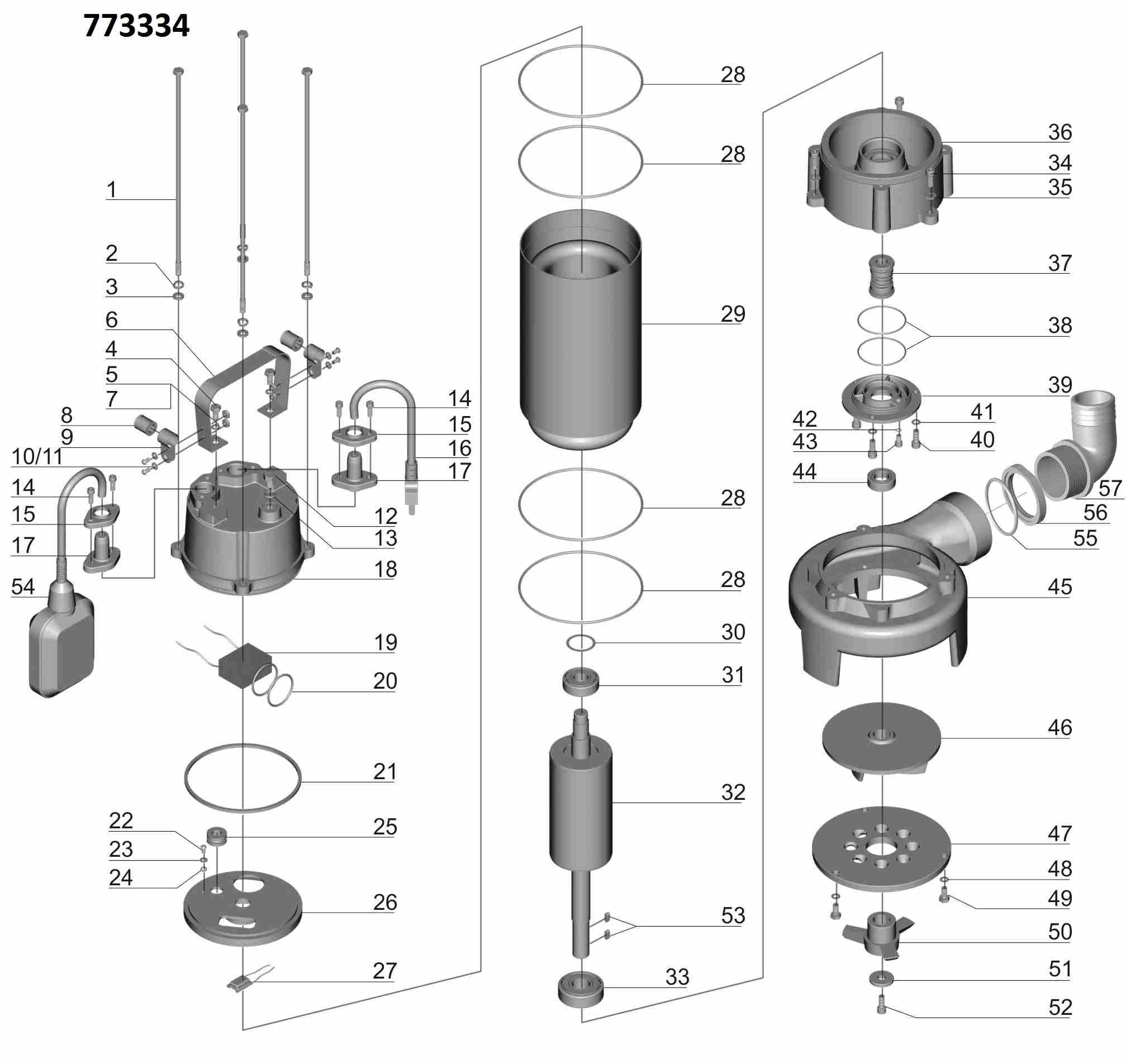 - Поплавковий вимикач забезпечує автоматичне увімкнення та вимкнення насосів даної серії в залежності від рівня води.