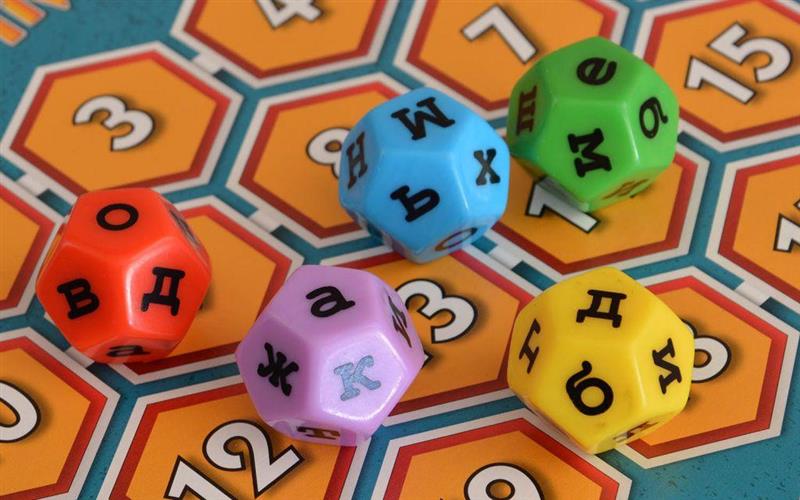 5 Різнобарвних 12-гранних кубиків з літерами