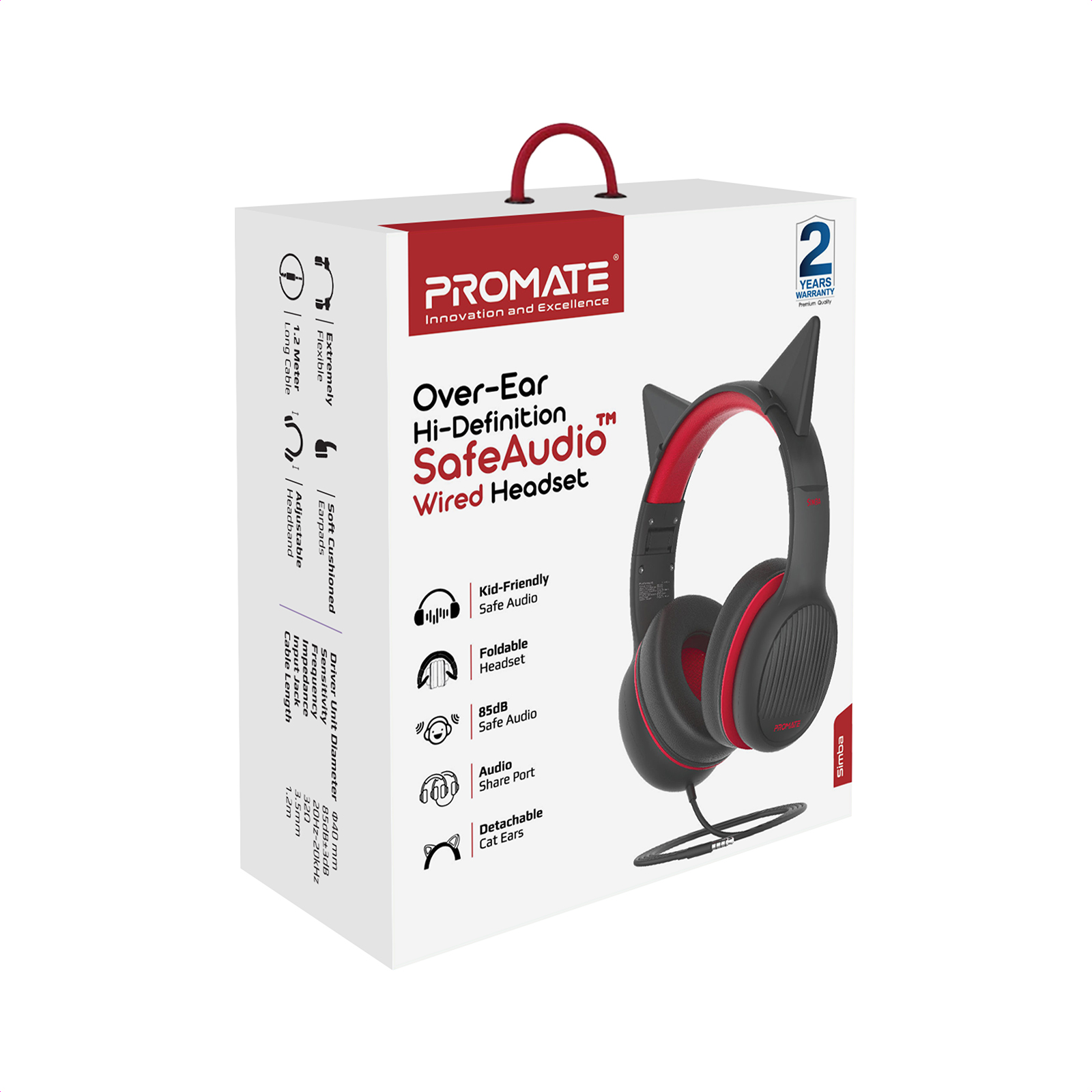 Дизайн для дітей: Знімні котячі вушки створюють неповторний візуальний ефект і яскраво виділяють Simba на фоні “навушників для дорослих”.